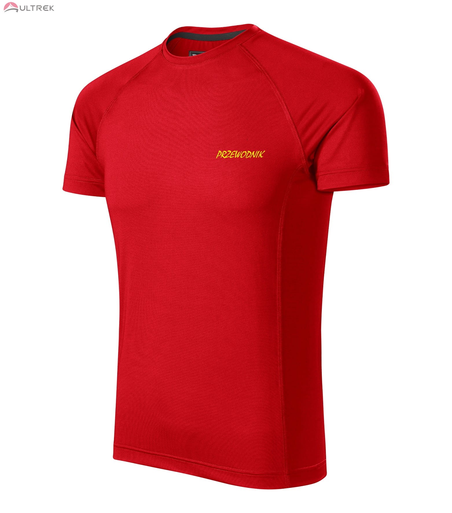 T-SHIRT szybkoschnący, wersja męska/unisex, prosta. Wykonany z gładkiego, elastycznego, szybkoschnącego materiału o składzie 95% mikropoliester, 5% elastan, idealny w góry oraz do wszelkiej aktywności fizycznej. Krój dopasowany, krótkie rękawy raglanowe, lekko przedłużone w tylnej części. Na koszulce nadruk PRZEWODNIK, długość napisu 9 cm., wysokość liter ok. 1,5 cm. Koszulki wykonujemy tylko na zamówienie, dlatego czas oczekiwania na realizację wynosi do 5 dni roboczych.